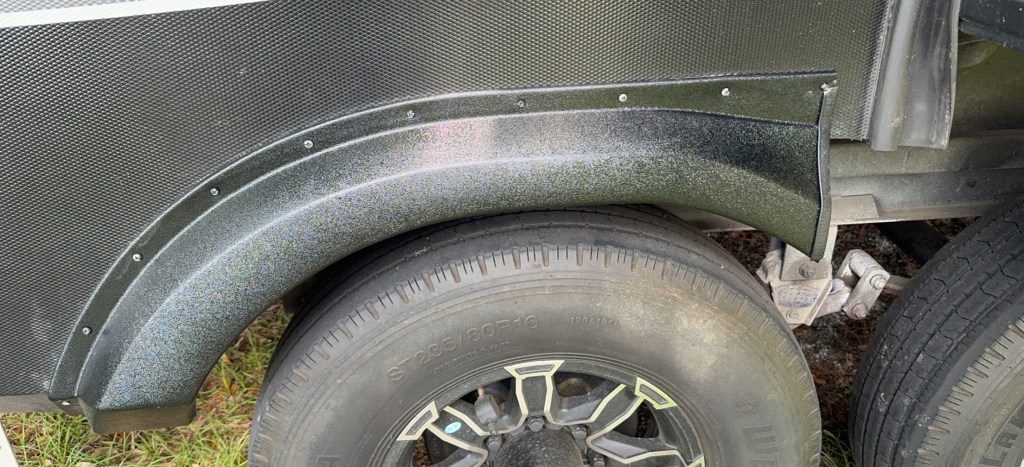 A year or so ago, we lost a wheel and tire and when the tire rolled off, it damaged the trim. I recently purchased a new piece of trim from General RV in Ocala. Michael installed the new trim. Good Job Michael.